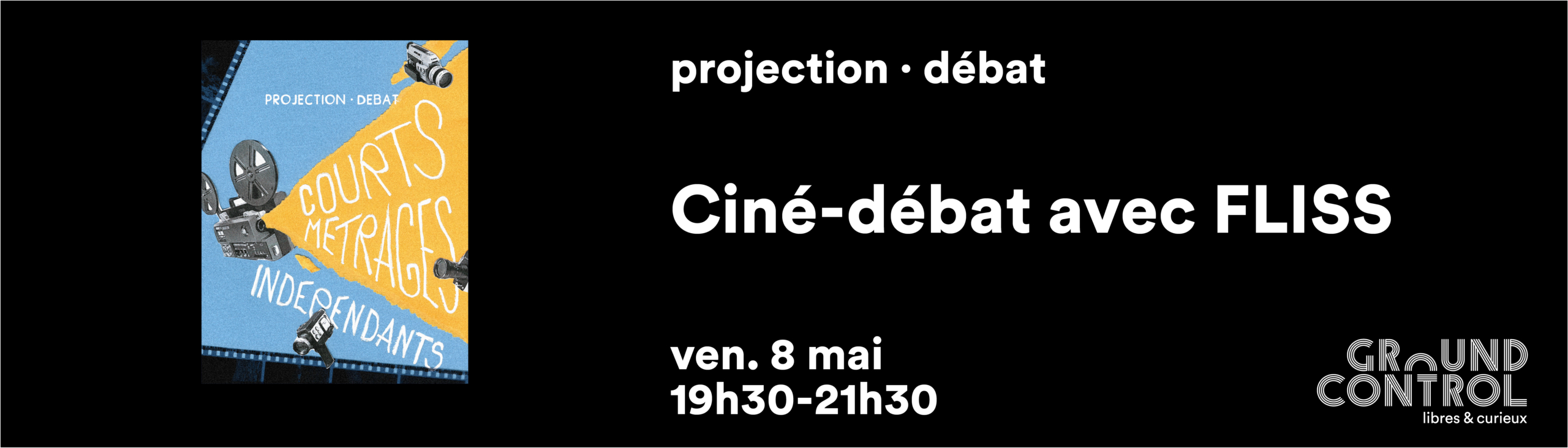Le vendredi 8 mai à Ground Control, nous projetons à 19h30 une sélection de courts-métrages, ainsi qu’un projet de l’asso FLISS.